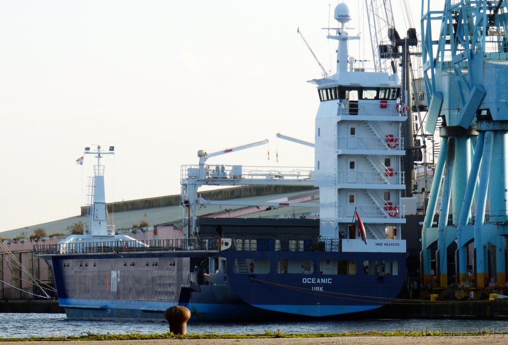 Unique looking cargo vessel Oceanic is currently unloading in East float today, Large bulker Mandarin looks like she has finished unloading as all here hatches are now closed